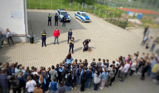 Activitățile la clase au fost suplimentate de demonstrațiile cu câinele polițist, dar și de prezentarea autospecialelor de poliție.