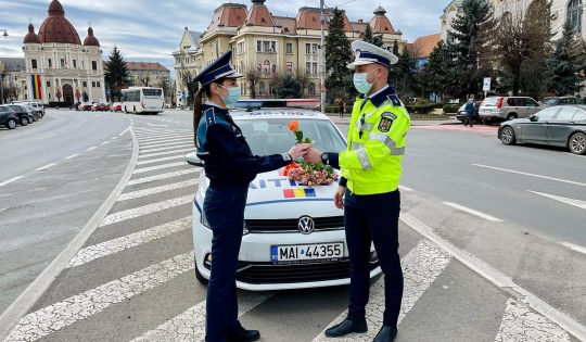 Prima zi de primăvară a doamnelor și domnișoarelor aflate în trafic pe raza județului Mureș a început cu un zâmbet călduros oferit de polițiștii care, în această zi specială, au fost alături de acestea, într-o altă manieră, oferindu-le flori și mărțisoare tradiționale.