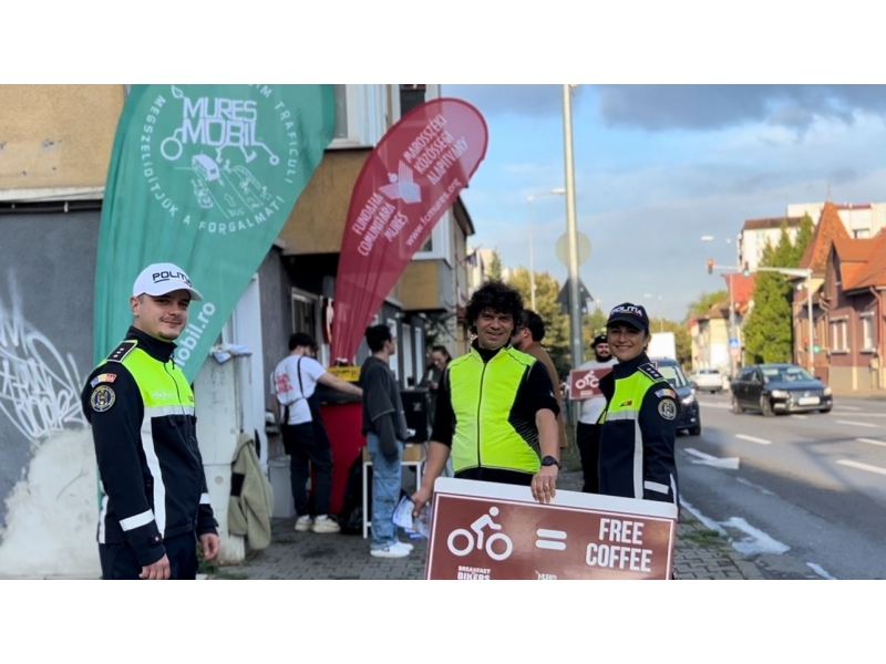 În perioada 15 – 19 septembrie 2025, polițiștii din cadrul Serviciului Rutier, Biroului Rutier Târgu Mureș și Compartimentului de Analiză și Prevenire a Criminalității participă, alături de partenerii locali, la acțiunea „Breakfast 4 Bikers – Mic Dejun pentru Bicicliști”, organizată în municipiul Târgu Mureș, în preambulul Săptămânii Mobilității Europene.
