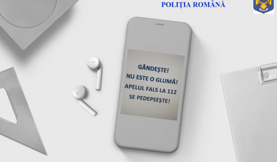 “GÂNDEȘTE! NU ESTE O GLUMĂ! APELUL FALS LA 112 SE PEDEPSEȘTE! SUNĂ RESPONSABIL!”