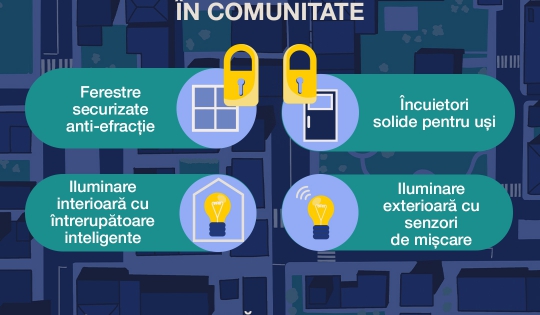 - Montați încuietori de înaltă siguranță la ușile de acces în locuințe!
