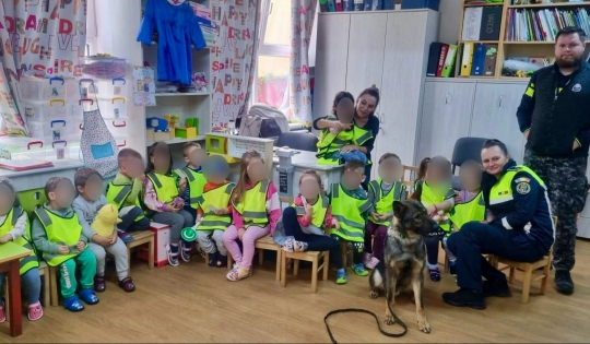 Astfel, într-o manieră interactivă, și alături de câinele polițist, elevii au parcurs diverse lecții de educație preventivă.