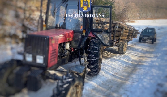 În cadrul acțiunii, acești au depistat un ansamblu auto, format dintr-un tractor agricol și o remorcă, în timp ce transporta, pe DC 32, cantitatea de 5,73 mc material lemnos (lemn rotund rășinos), fără documente legale de însoțire.